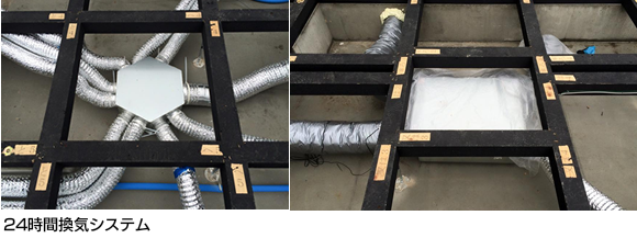 床下には24時間換気システムをセットし、暖かい空気、冷たい空気を室内に給気します。